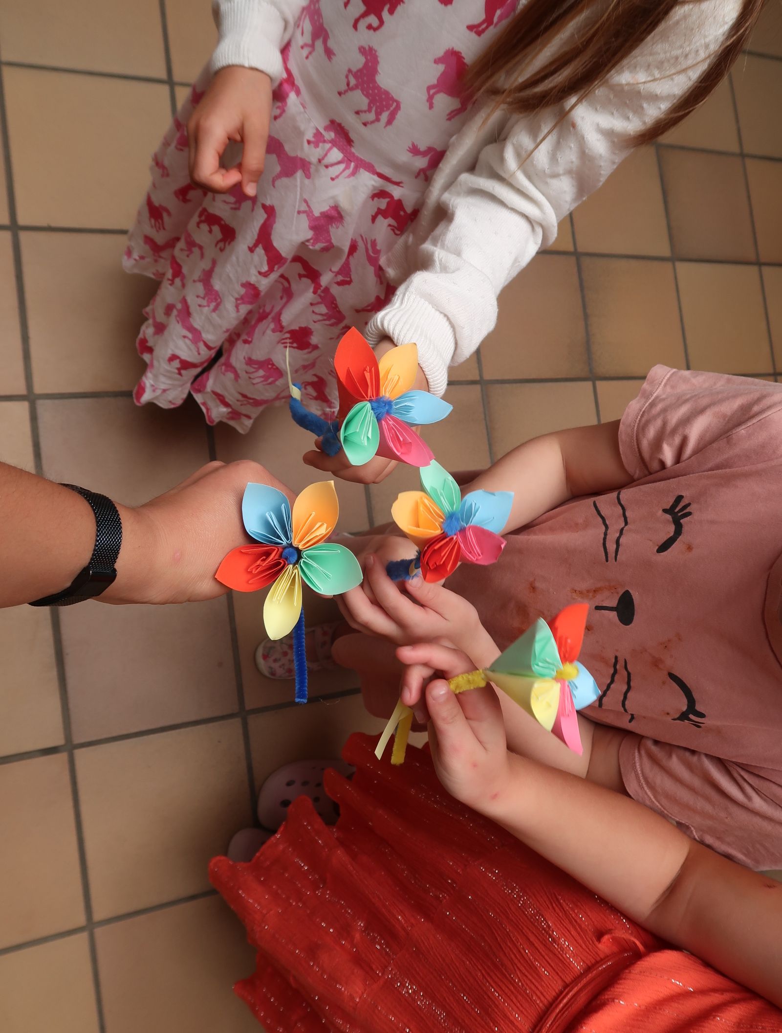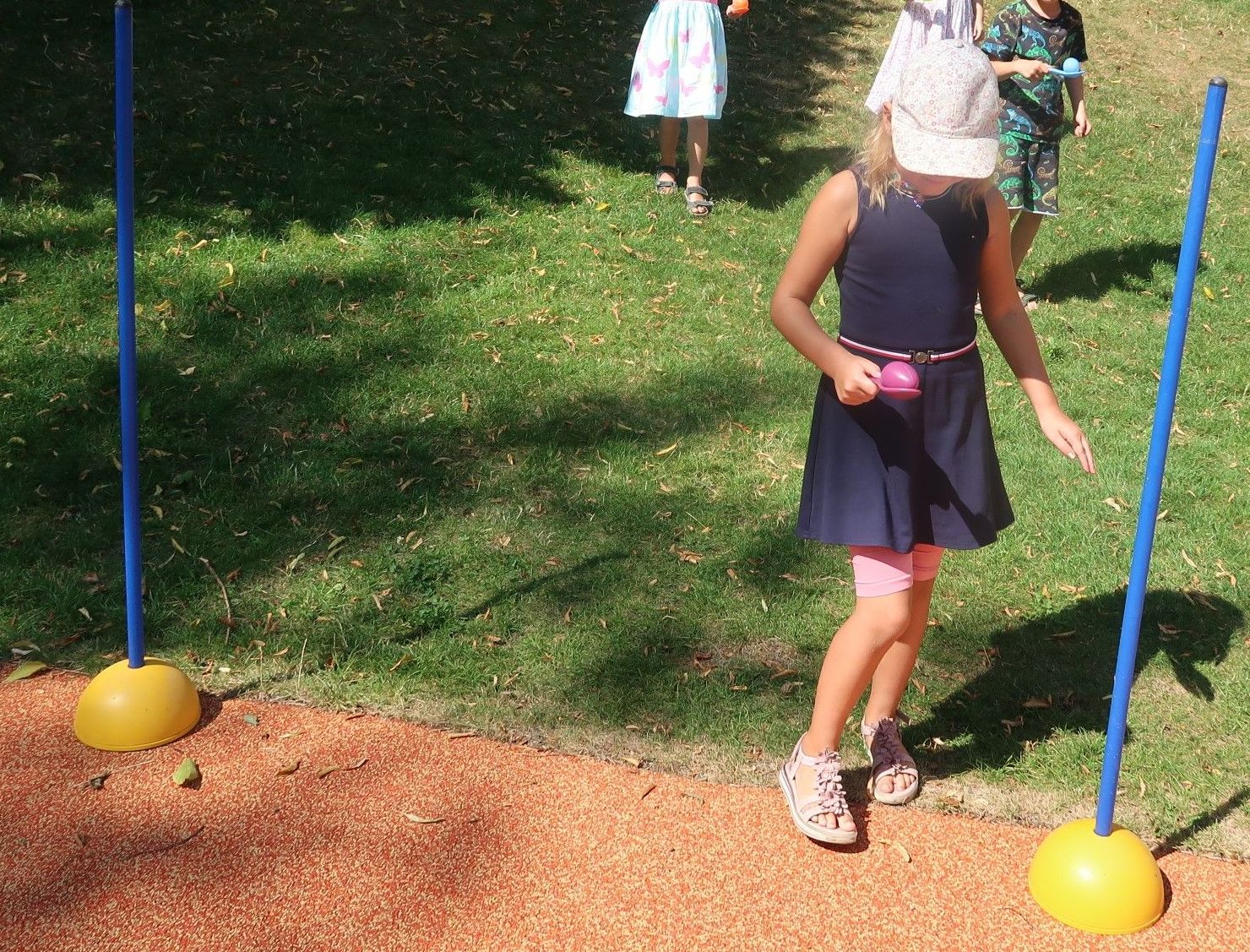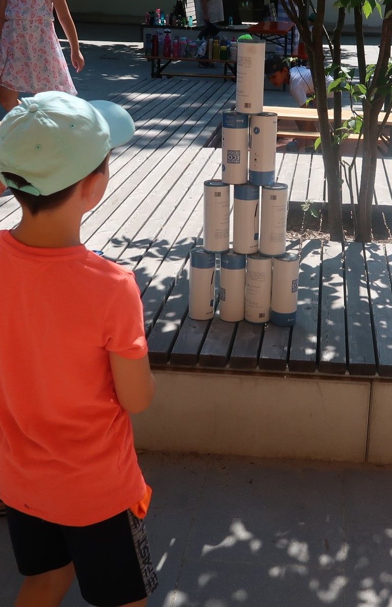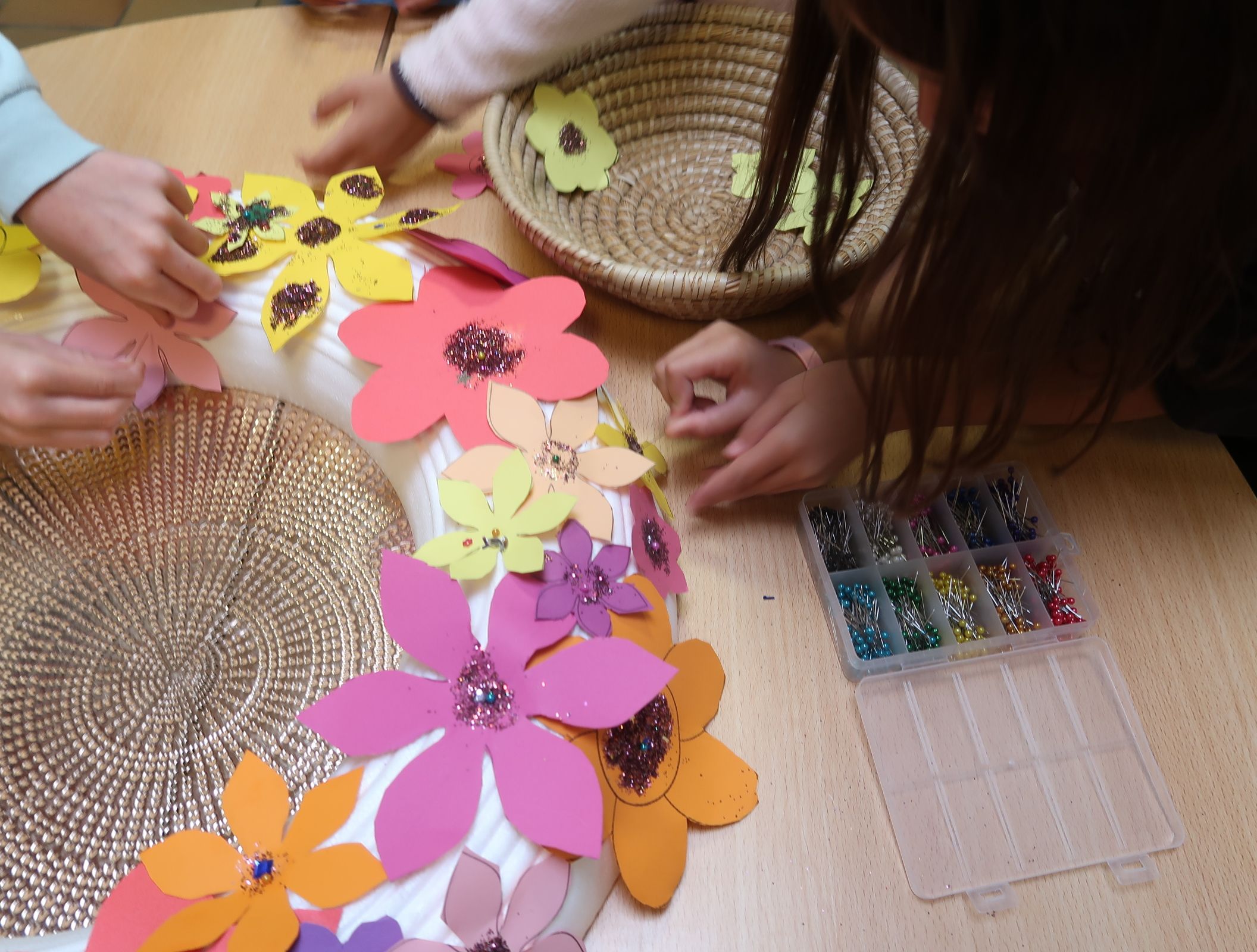Wir bastelten einen Gemeinschaftsblumenkranz, absolvierten eine Olympiade und beendeten die Woche am Freitag mit Musik, Tanz, Kinderschminken und Luftballonsteigen.