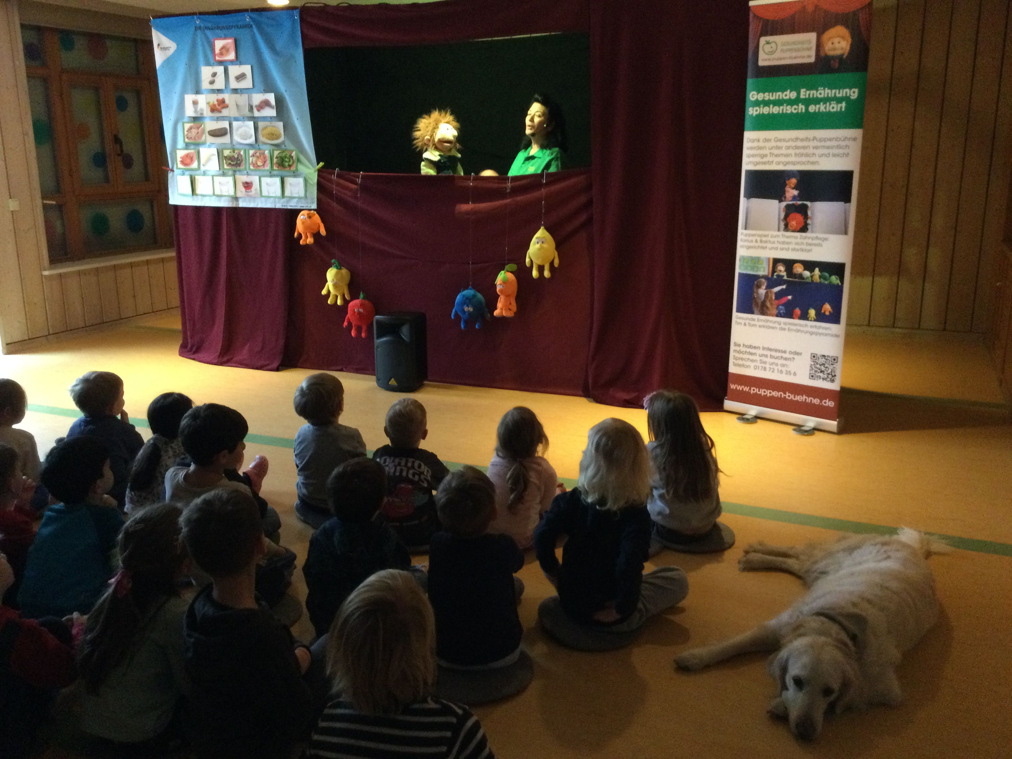 Ein besonderes Highlight war, dass auch Kindergartenhund „Emmy“ aufmerksam zuschaute und die Aufführung sichtlich genoss. Die Vorstellung hat nicht nur für Spaß gesorgt, sondern auch das Bewusstsein der Kinder für gesunde Lebensweise weiter gestärkt.